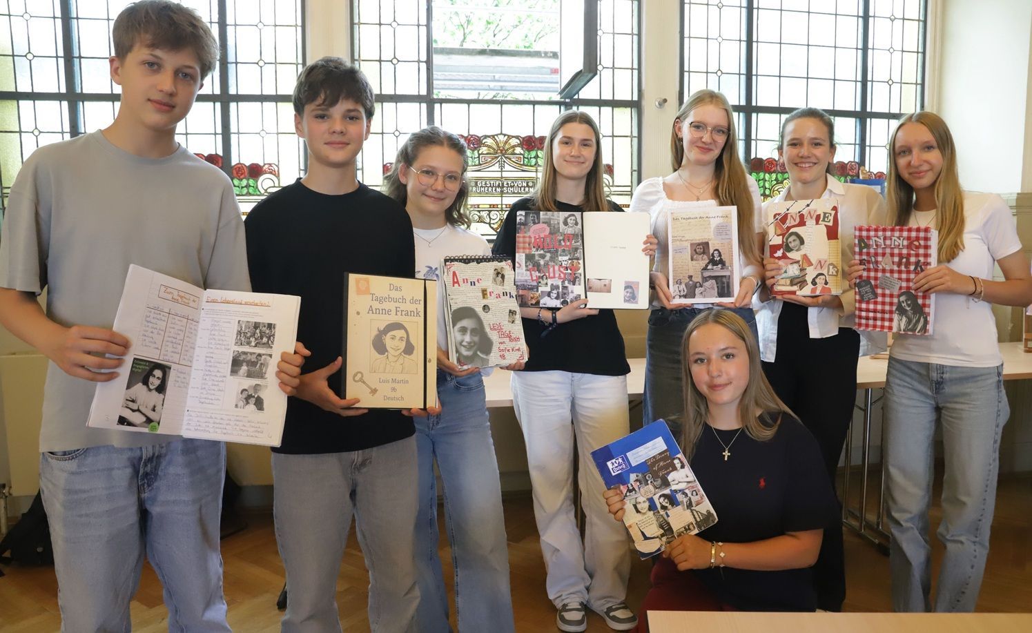 Der Anne Frank Tag ist ein bundesweiter Aktionstag für Schulen gegen Antisemitismus und Rassismus. Zudem wird an diesem Tag an Anne Frank, die Opfer und die Verbrechen aus der Zeit des Nationalsozialismus erinnert. Der Tag findet jedes Jahr am 12. Juni statt, dem Geburtstag von Anne Frank. Aufgrund des Lancing Austausches und des knappen Zeitplanes war es uns nicht möglich unseren Anne Frank Tag ebenfalls am 12. Juni abzuhalten, daher verschoben wir ihn kurzerhand auf den 25. Juni. Im Vorfeld erarbeiteten wir uns das Buch Stück für Stück und hielten unsere Ergebnisse in individuell gestalteten Lesemappen fest.