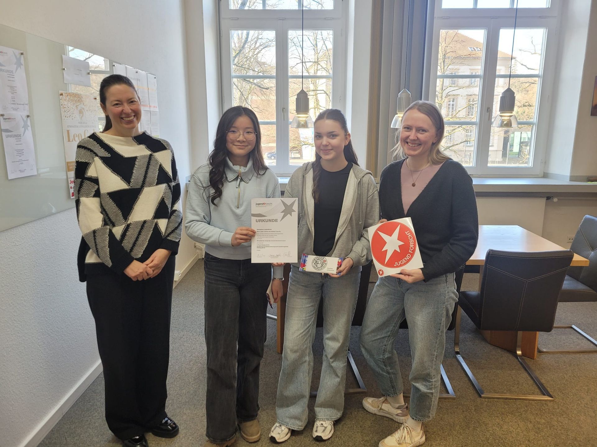 Für ihre herausragende Forschungsarbeit wurden Mara und Jessica mit dem 3. Platz im Fachbereich Chemie sowie einem Sonderpreis der Jury ausgezeichnet.