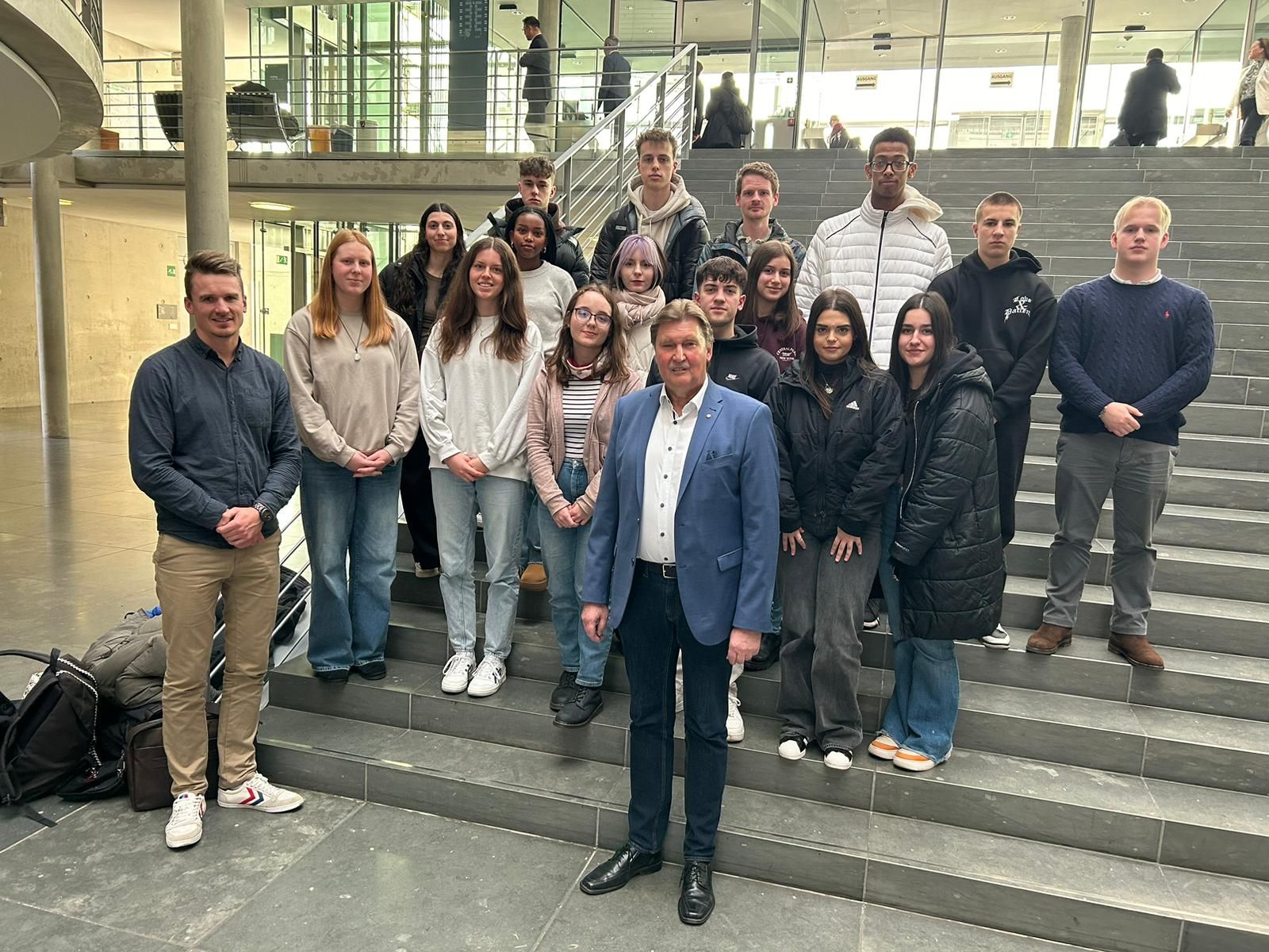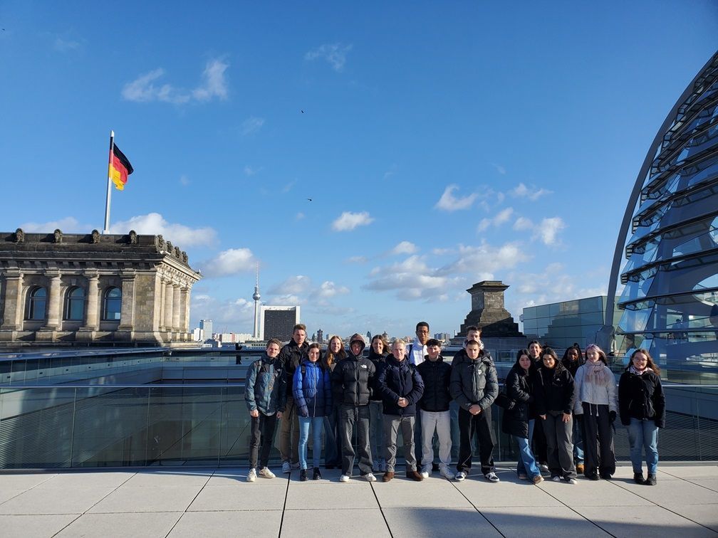 Am 01.02.2024 besuchten die Schüler und Schülerinnen des Leistungskurses Sozialwissenschaften der Qualifikationsphase auf Einladung des Bundestagsabgeordneten Herrn Jürgen Berghahn (SPD; MdB) den Bundestag in Berlin. Die Schüler und Schülerinnen vom Leopoldinum, Grabbe- und Stadtgymnasium, begleitet durch die Lehrkräfte Herr Rissiek und Herr David, konnten dabei u.a. einer Plenarsitzung auf den Besucherrängen beiwohnen, das Dach und die Kuppel des Reichstagsgebäudes betreten und sich mit dem Abgeorneten über ökologische, wirtschafts-, sozial- und sicherheitspolitische Herausforderungen austauschen. Im Anschluss war es sogar noch möglich, umliegende Sehenswürdigkeiten wie das Brandenburger Tor und das Holocaust-Mahnmal zu besichtigen.