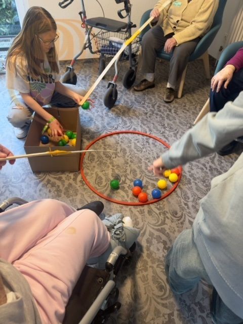 Nach wochenlanger Vorbereitung haben sie das Seniorenheim Am Dolzer Teich besucht, um dort mit den Bewohner:innen selbst gebaute Spiele zu spielen, mit ihnen ins Gespräch zu kommen, zu lachen und voneinander zu lernen. Es waren sowohl für die Bewohner:innen als auch für die Schüler:innen unvergessliche Begegnungen. Zum Abschluss hatte die Klasse, unterstützt vom Unterstufenchor, noch ein buntes Programm vorbereitet mit Musik, Tanz und Zauberei, das allen viel Freude bereitete.