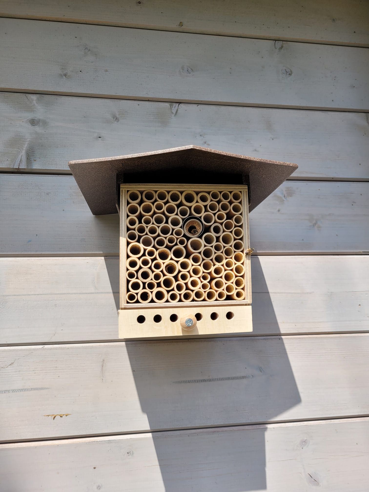 Von den übrigen 400€ Spendengeldern wurden bislang Wildbienenkolonien und Nistmöglichkeiten für den Schulgarten gekauft, um auch regional einen Beitrag zum Klimaschutz zu leisten!